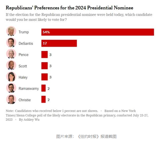 目前在民调中特朗普以相当大的优势领跑其他共和党人,不过,随着越来越多的共和党人宣布参选、特朗普涉嫌案件,最终谁将代表共和党角逐 2024 年美国总统选举还充满了未知。