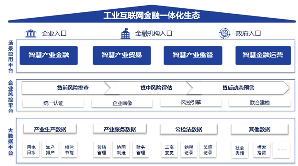面对银政企协同的大趋势,百度智能云与兴业研究、兴业数金携手设计了工业互联网金融解决方案,探索银企协同的创新模式,服务于区域企业发展和政府监管施策,进一步提升金融服务实体经济的效能。该方案包括三大类平台。