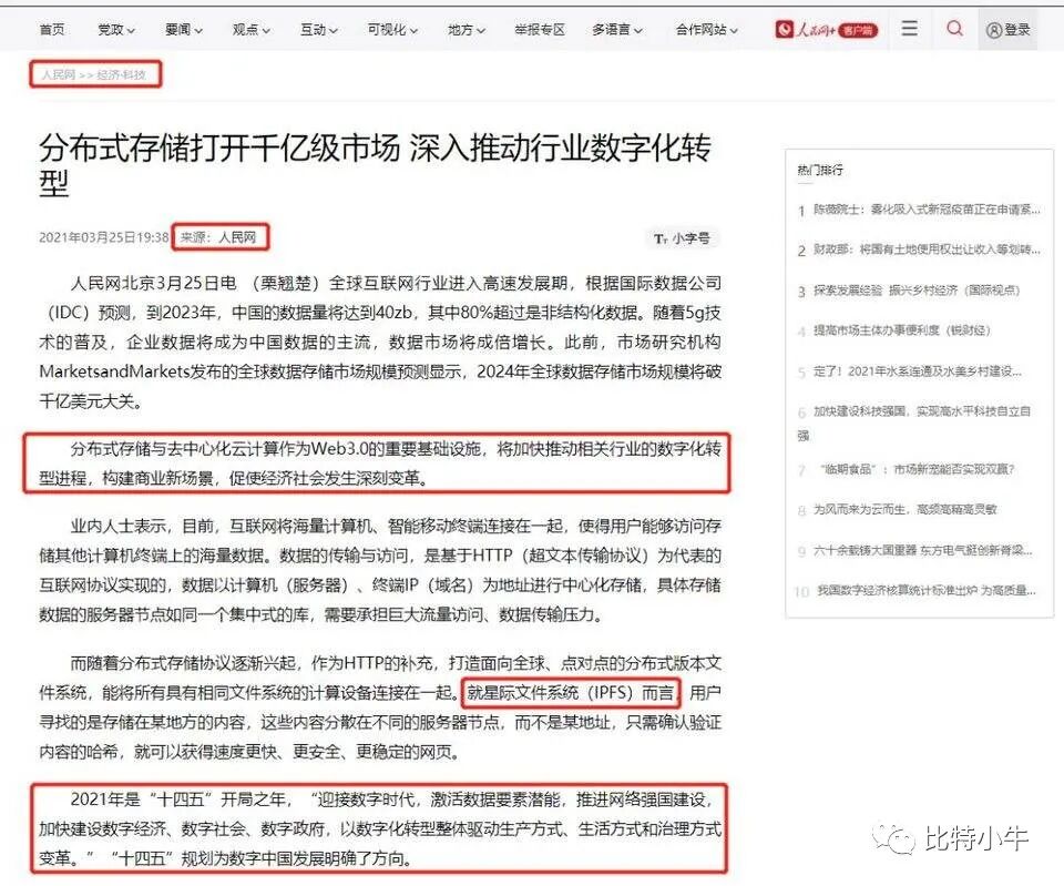 例如:人民网发文分布式存储是 Web3.0 的重要基础设施