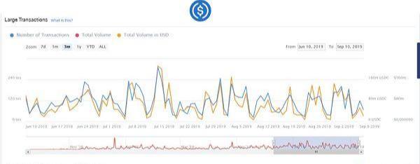 3)大多数稳定币没有用于大额交易,但 Tether 例外