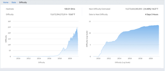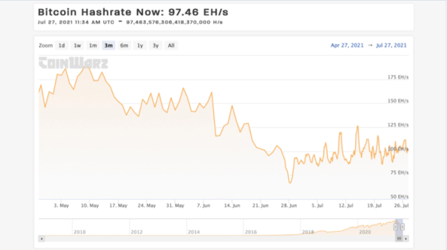 在 6 月 9 日之前,经过两次小幅下跌至 137 EH/s,算力设法保持在 150 EH/s 以上,难度提高了 21%。然而,中国的行为对中国比特币矿工影响很大,6月28日,算力仅为66 EH/s。