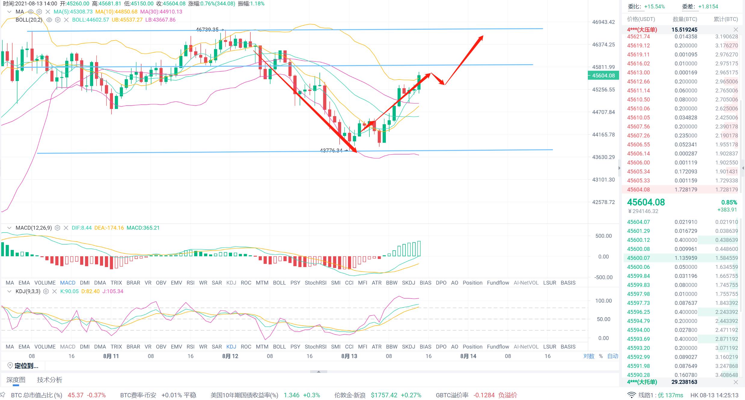莫愁前路无知己,投资路上有知音,大家好我是玩币天王,很高兴在今天下午这个时间跟各位来复盘一下行情,疫情反复也提醒各位要戴好口罩,避免去人员聚集的地方,下班了回家陪陪家人看看行情操作一下就好了。行情天天有,昨日特别多,比特币和以太坊从高位进行中期回落进行调整,最低比特币来到了下方的43,776,而以太坊是最低达到2980,整个一天的行情可以说是如过山车一般刺激,很多人都懵了,不知道为什么。就算是很多一直等着抄底的朋友也没敢出手,今天天王就讲讲面对这种行情,咱们应该如何把握?