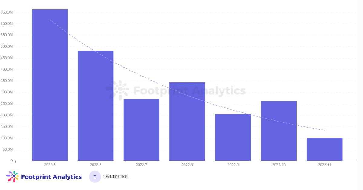 - GameFi 的总交易量从 10 月份开始下降,从 2.6 亿美元下降到 1 亿美元。