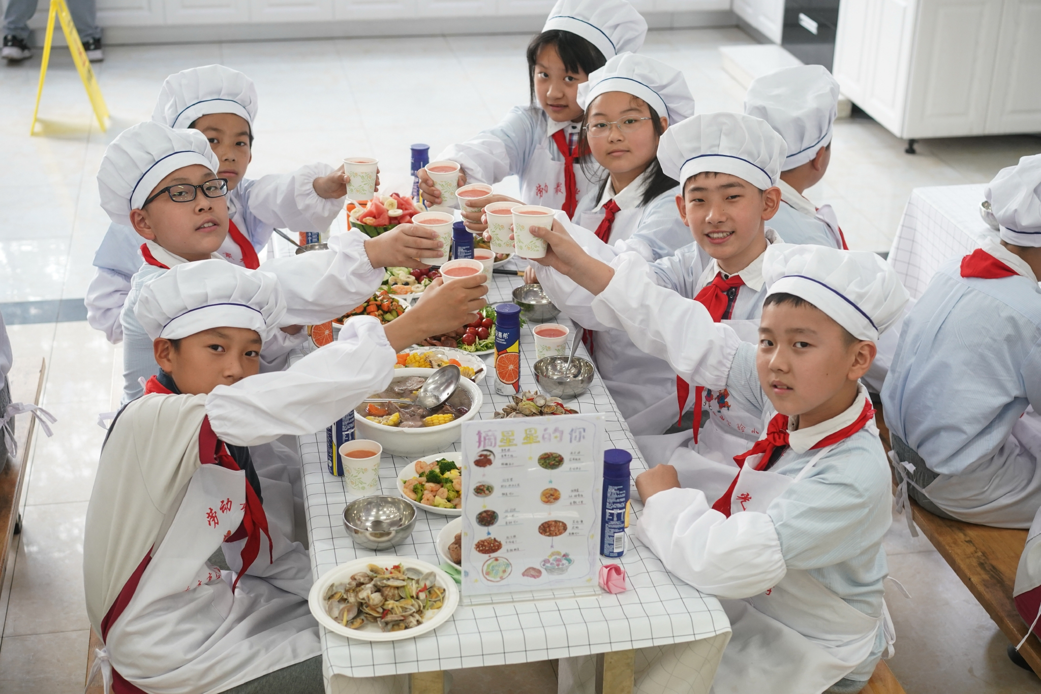 近年来,南京市中小学将课程建设与课堂教学作为落实劳动教育的重要途径和载体,构建劳动教育课程体系,形成一批学科融合、富有特色的劳动教育校本课程。5月20日,南京市岱山实验小学学生在举行“班级宴会”。新华社记者 季春鹏 摄5月19日,南京市晓庄小学学生在农场辅导员的指导下给农作物培土。新华社记者 季春鹏 摄5月19日,南京市晓庄小学学生在