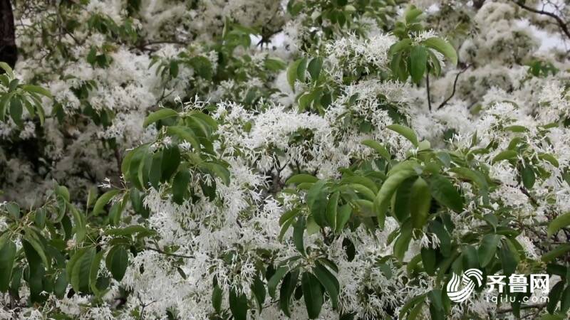 齐鲁网·闪电新闻5月4日讯 “树覆一寸雪,香飘十里村。”眼下,新泰市青云街道尹家庄村的千年流苏悄然盛放、如雪似画,美不胜收。 那成团成簇的流苏花花瓣,就像是冬天里的雪花一样,洁白如丝,故又得名“四月雪”。 远观,仿佛云端坠落屋檐,近看,朵朵纤细的花瓣惹人情思,让人爱怜。犹如古代仕女服饰之流苏,因而得名。 闪电新闻记者 王子翔 新泰台