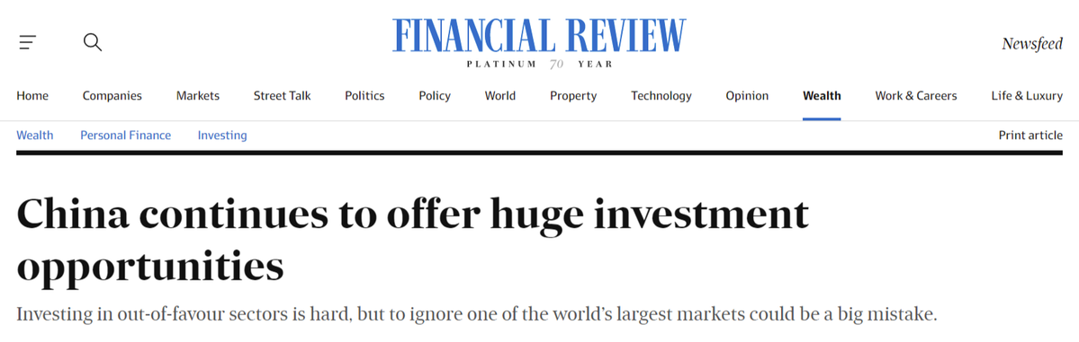 中国日报网5月18日电 据《澳大利亚金融评论报》网站5月16日报道,当前世界经济面临着诸多不确定性,对投资者来说,中国有着令人兴奋的机遇,无疑是投资的合适选择。文章说,中国有着令人兴奋的机遇,忽视世界上最大的市场之一可能犯下大错。资产管理机构贝利-吉福德公司高管阿拉斯代尔·麦克休表示,中国推动“共同富裕”意味着经济可持续和包容性增长。许