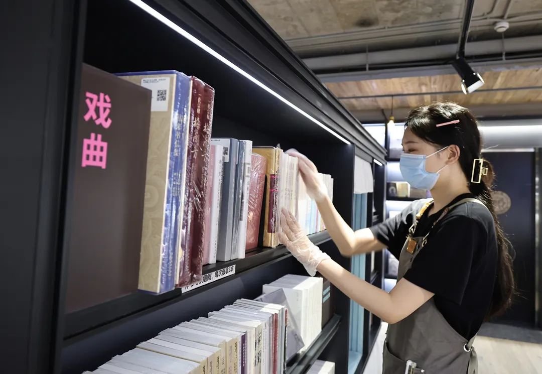 今天上午10时半, 位于茂名南路长乐路的朵云书院·戏剧店 迎来了恢复营业后的第一批顾客。 朵云书院·戏剧店店员整理书架 ©王凯 ©王凯 朵云书院·戏剧店店长李彩表示:“很开心能够重新与读者见面,这一刻已经等了好久。书店会做好各项防疫措施,严格遵守防疫要求,除了读者进店需要预约和扫描场所码以外,书店还会在每天10时、15时、21时实施三