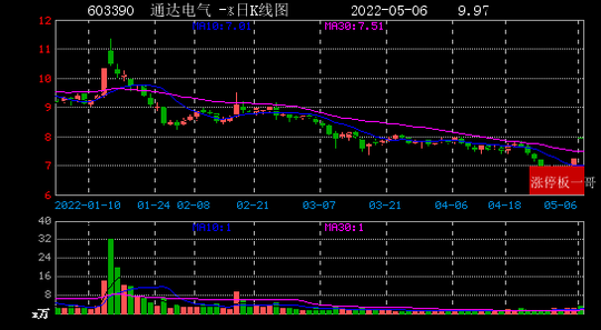 2022年05月06日,区块链受到利好消息的刺激下,整个板块掀起了涨停潮。共7家涨停,1家连板。1家一字板。2板:1、通达电气(603390)(9.97%)1板:1、日出东方(603366)(10.05%)2、塞力医疗(603716)(10.02%)3、吉宏股份(002803)(9.99%)4、环球印务(002799)(10.05%)5