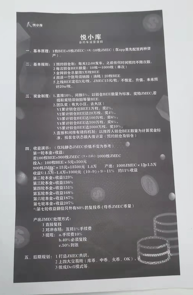 办案民警郭铮向介绍,在虚拟货币项目暴雷后,该公司曾经改头换面,做起了茶叶生意,实际上是在为外地其他虚拟币诈骗提供引流服务。近期,该公司再次改变地址,重新做起了一项名为“悦小库”的虚拟币项目,其诈骗手法与ForestPlus项目非常类似,警方联系多位投资者,对方均不知道已经上当。