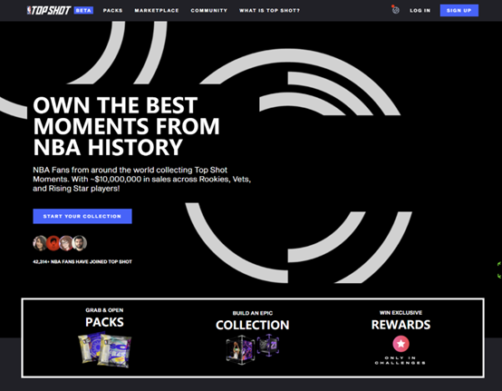 作为NFT的标杆性应用,DapperLabs设计开发的NBA Top Shot基于Flow链,为球星卡收藏群体、广大球迷以及休闲玩家围绕NBA电子球星卡打造了一个数字化的收藏品体验。