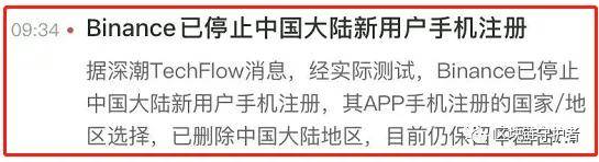 无独有偶,币安今天上午也发布了公告,“停止大陆地区新用户注册”。