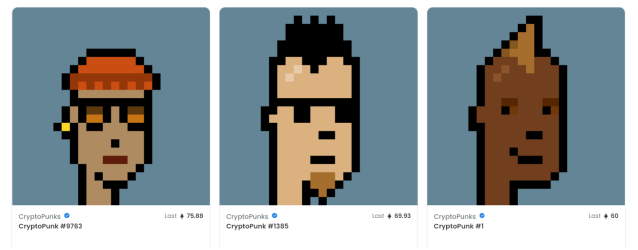 2017 年出现在以太坊区块链上的首批 NFT 项目之一是 CryptoPunks。CryptoPunks NFT 通常与原始 NFT 系列一样接近排行榜的前列,平均售价在 350,000 美元到 500,000 美元之间。然而,许多 Punks 的成交价已达数百万美元,其中苏富比拍卖行创下了 1170 万美元的最高真品拍卖记录。