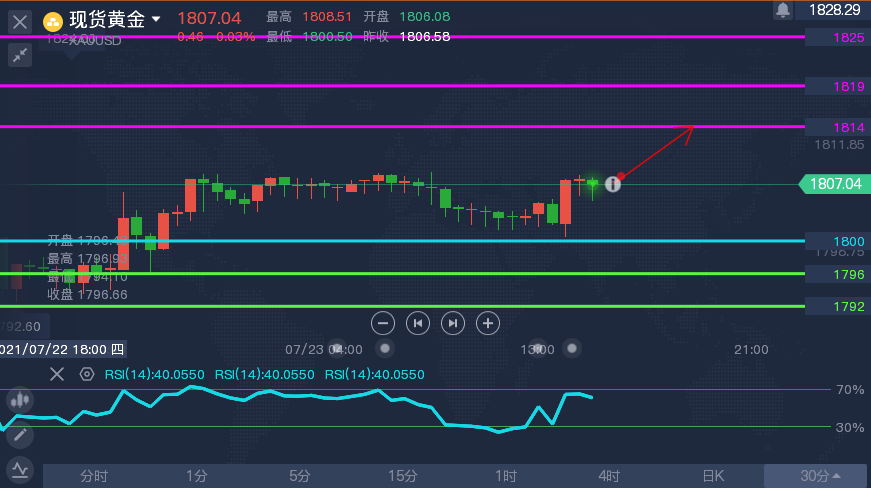 技术刘:现货黄金转折点上移至1800,上方阻力区间缩窄
