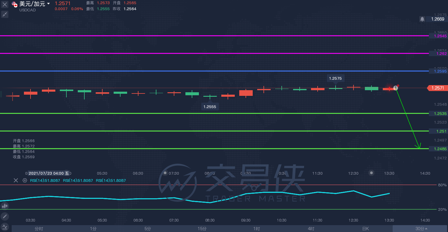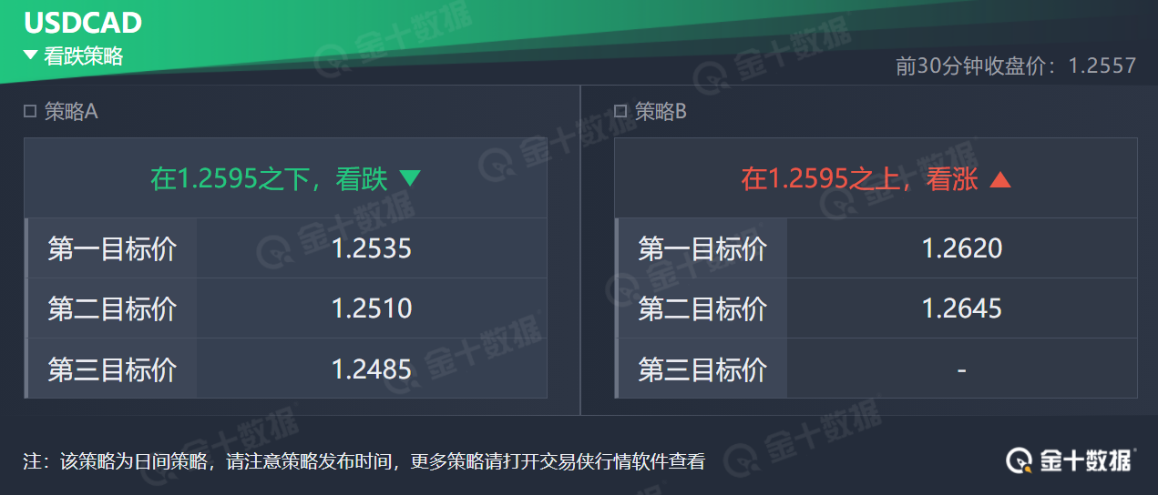 美元兑加元在转折点1.2595下方看跌,支撑位为1.2535和1.2510;若突破1.2595,有望进一步看向1.2620,甚至1.2645。