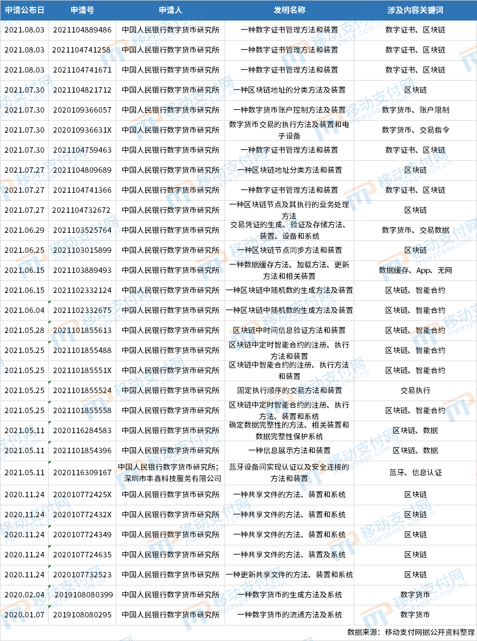 随着数字人民币试点逐步深入,越来越多的企业开始加入到试点中,而“数字货币”相关的专利申请也不断更新。
