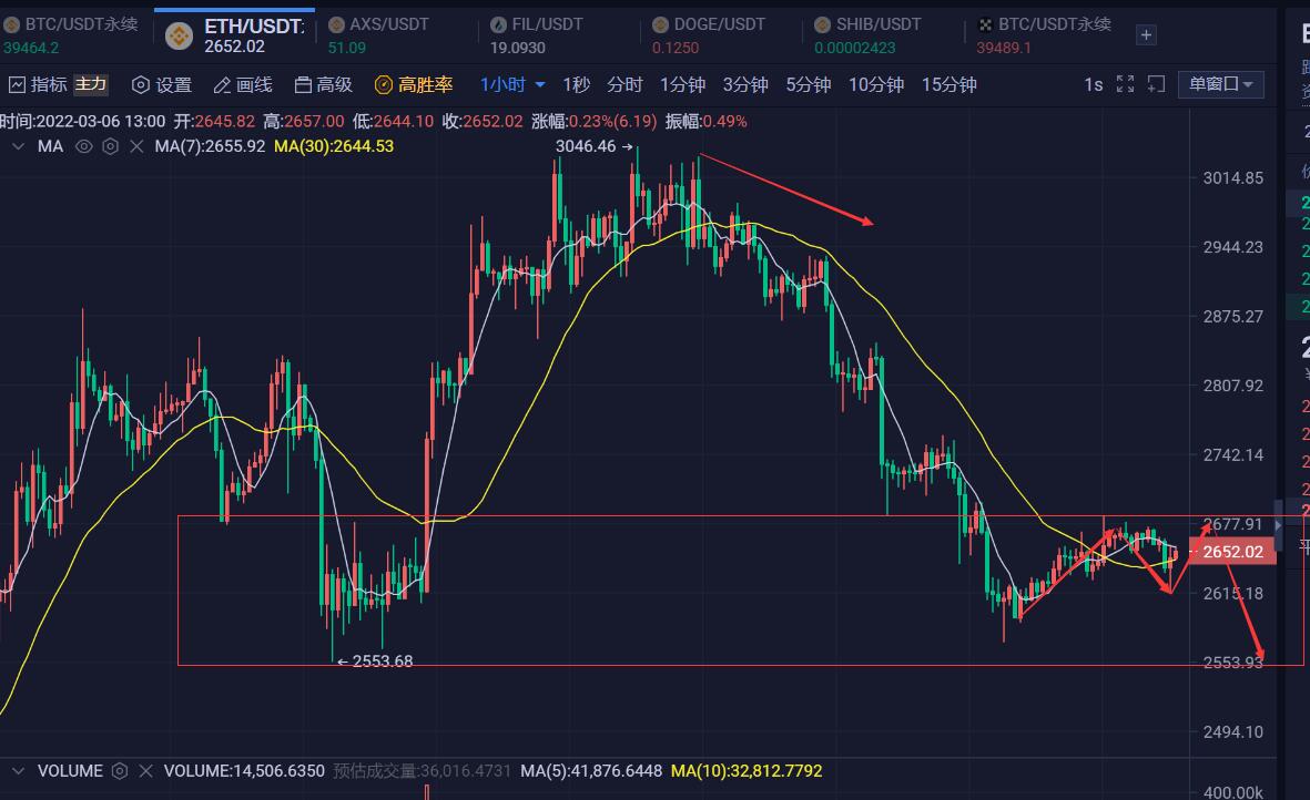 以太坊也是一样的空头方向,做空是主思路,昨日反弹触及了2680一线之后拐头向下,今天反抽上去的话依然以这里作为开空的最好时机即可。不同于大饼的是,以太跌势和弱势都要明显一些,前期目前正一步步逼近前期的低点2550附近,短期内弱势行情还在,行情再次下跌甚至先一步跌破这一支撑的可能性极大,做空到2550一线的空间不算小,耐心等待市场发力就好,今日依然可以做空以太为主,等行情下跌测试这一支撑位置再根据市场情绪去做下一步安排。