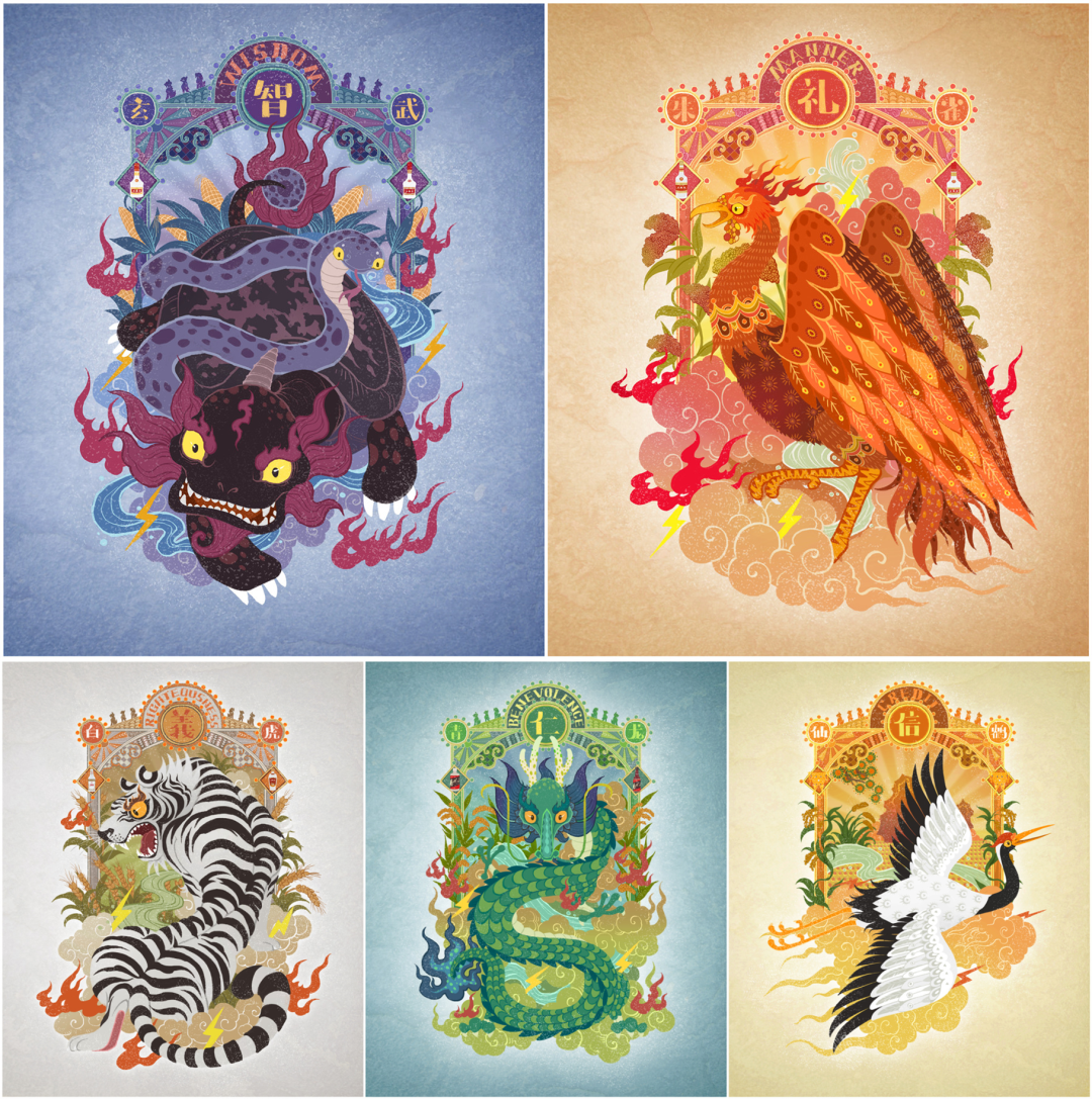 在今年元旦,元隆宇宙联合数字绘画艺术家刘明发布了名为《神兽和五常》的绘画类NFT数字藏品,正式进军元宇宙。