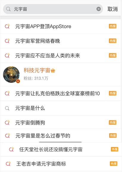 2)名人带动出圈关于元宇宙的新闻也频上微博热搜,元宇宙随着“名人宣传”,逐渐出圈。