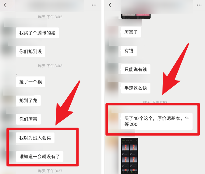 在进入一些“NFT 艺术品购买群”后,群内的用户经常会表示“买了 10 个,坐等涨价”,以及“疯抢中,一会儿就没有了。”