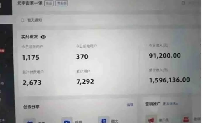 关于元宇宙第一课的知识付费,累计付费用户 2673 人,累计总收入近 160w 。