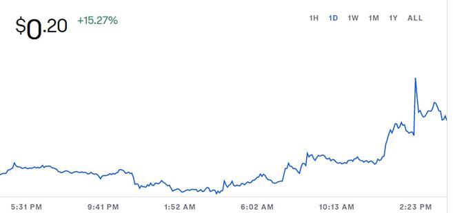 其中售价最高的是儿童电动四轮车,售价12020狗狗币。以当前狗狗币价格(0.2美元/枚)计算,约相当于2404美元。在马斯克这一动作刺激下,狗狗币果然出现大涨。根据Coinbase报价,狗狗币在过去24小时内上涨了超15%