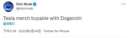摘要:原标题:马斯克又"炒币"?特斯拉周边产品开始接受狗狗币付款 财联社(上海 编辑 刘蕊)讯,马斯克对狗狗币(Dogecoin)的炒作似乎又开始了。 美东时间周五凌晨,马斯克发布的一条推特激起千层浪:特斯拉商品开始接受狗狗币购买了! 从特斯拉官网来看,目前可以用狗狗币购买的商品并不包含特斯拉汽车,而主