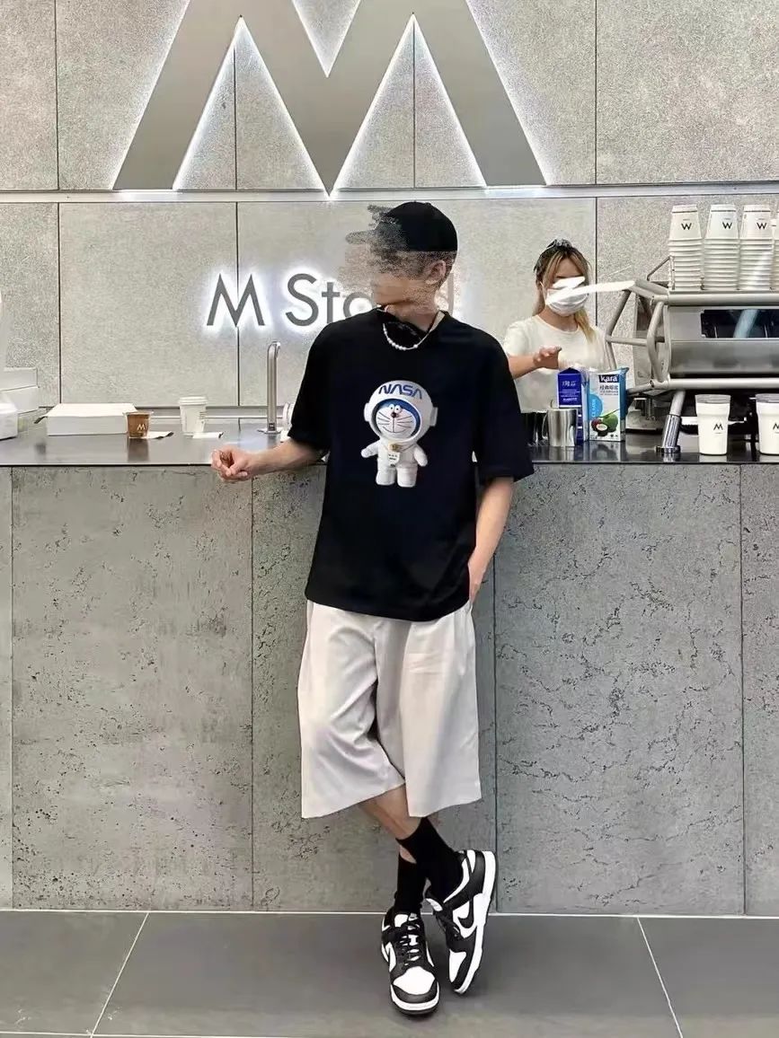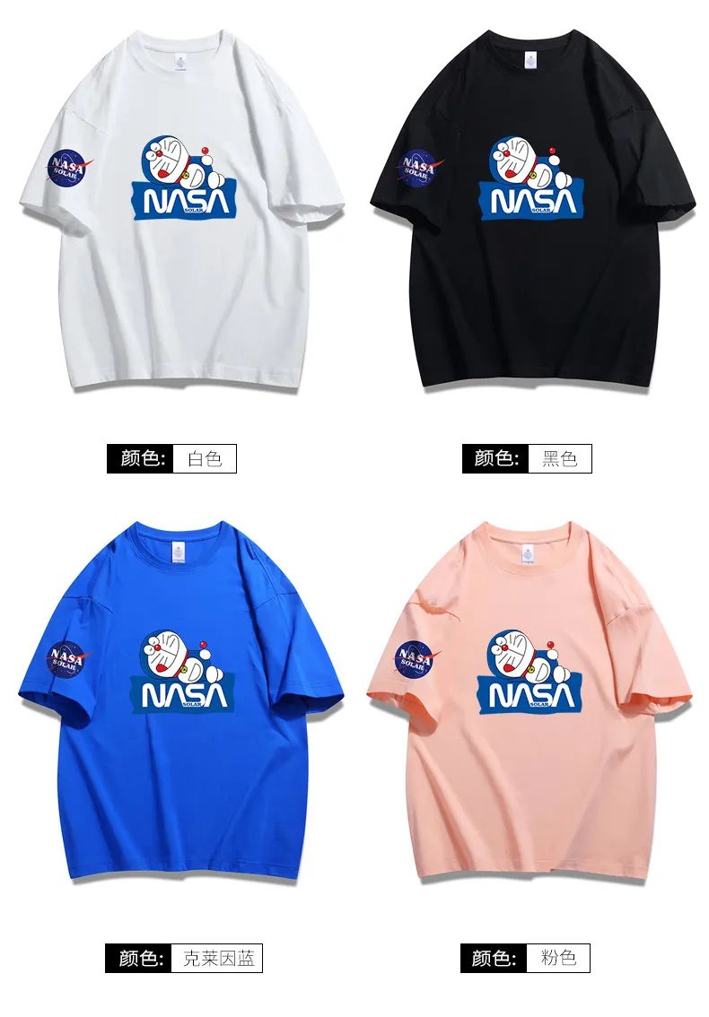胸前可爱的宇航员哆啦A梦减龄满分,可爱又百搭,夏天穿元气满满哦~