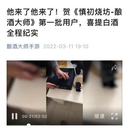 至于其宣称的特色提酒功能,3月11日,上述公众号发布名为“《慎初烧坊-酿酒大师》第一批用户喜提白酒全程纪实”的视频,记者发现,这一视频虽然是“全程纪实”,但内容均为用户开盒视频,有的甚至只有白酒酒瓶及包装的照片,并没有体现“线下提酒”中“提”的具体操作过程。