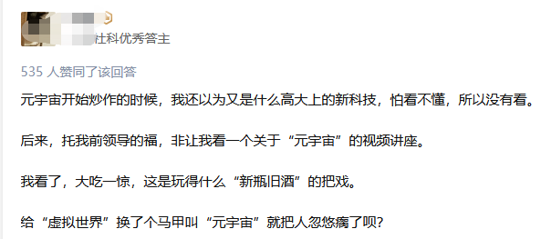 因此有网友认为,元宇宙不过是个新型割韭菜的概念,“新瓶换旧酒”罢了。