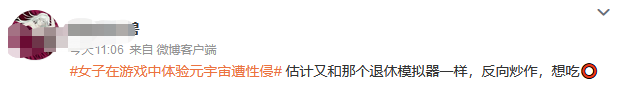 这种不以为然的态度引起很多人的不满,认为元宇宙游戏是沉浸式体验,代入感极强,类似元宇宙“性侵”之事,是难以接受的。