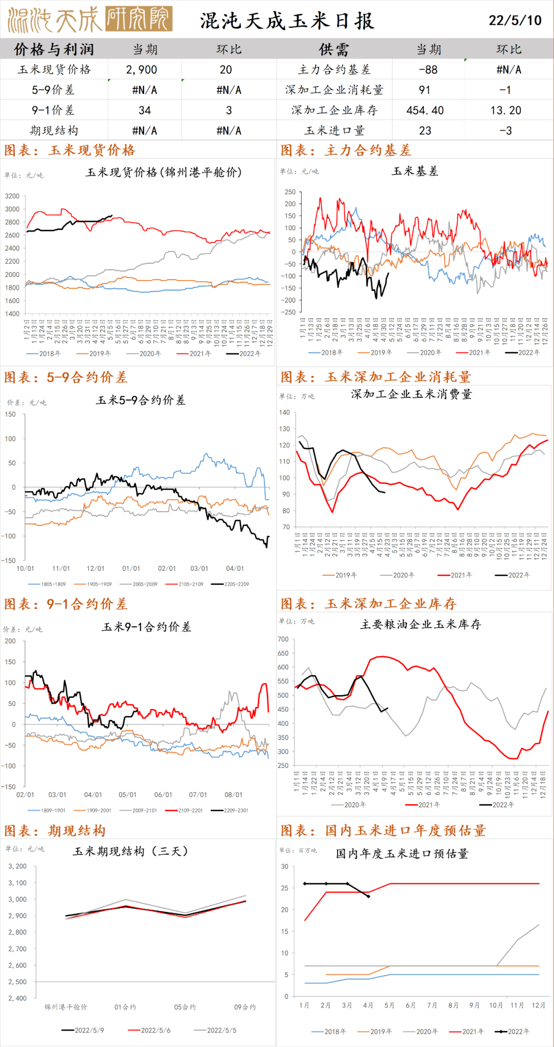 玉米:供应端,国内吉林等东北地区播种进度正常,没有发生严重的滞后;乌克兰播种进度落后幅度符合市场预期,乌克兰玉米尽管可以通过邻国出口但毕竟运力有限;美国玉米播种进度预期会加快,因为未来一周天气比较好。法国小麦的干旱程度加深,优良率不断下滑,一定程度上利好玉米。总之玉米供应端,多空皆有,但美玉米种植进度预期加快是主要矛盾,使得国内玉米期货短期偏弱。