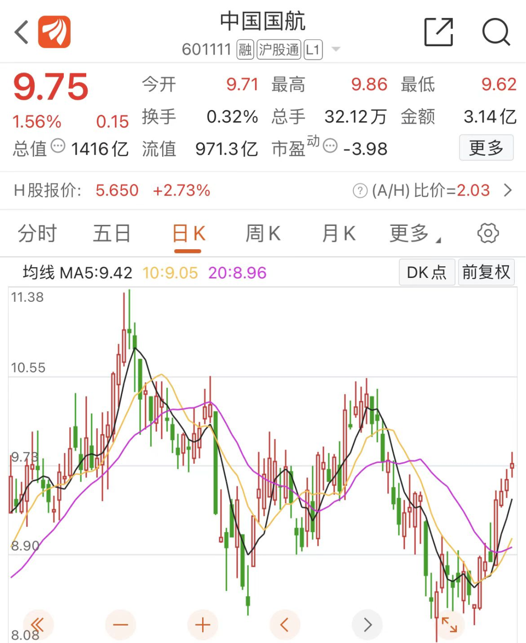 截至5月30日收盘,中国国航报收9.75元/股,总市值为1416亿元。而B股上市在今年4月因资不抵债而正式“戴帽”的*ST山航B报收2.7港元/股,总市值为10.8亿港元,值得注意的是,其近三个交易日均收获涨停,近四个交易日股价合计上涨18.94%。