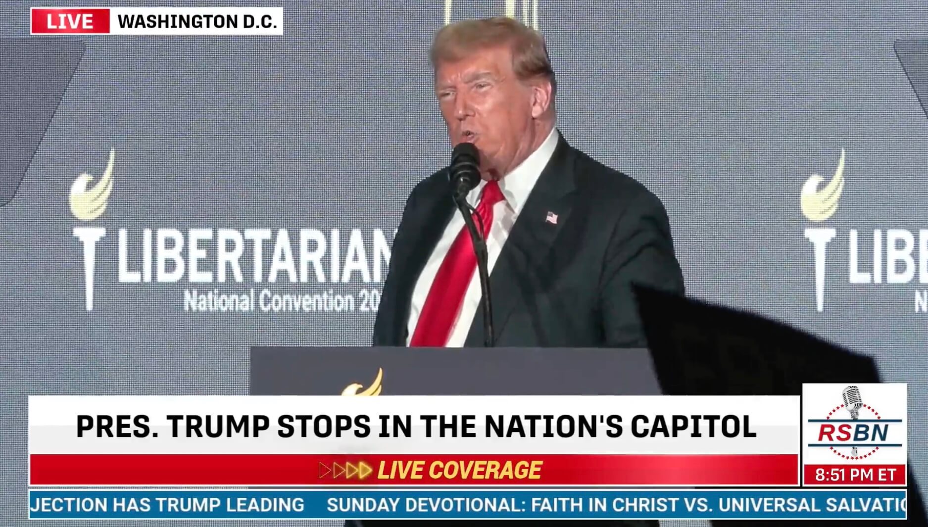 特朗普在 5 月 25 日于华盛顿举行的自由党全国大会上表示:"如果你们投票给我,第一天我就会为罗斯-乌尔比里希特减刑。"