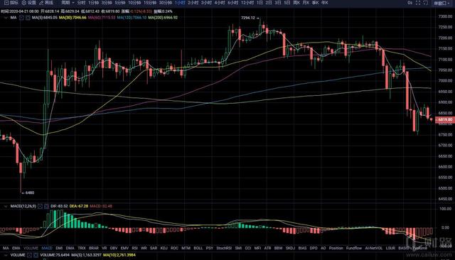 币市没有一点反应,利好来了,币价不升反降,今天凌晨4:00 BTC下行至6750的位置,总体的行情仍在7000点上下浮动。写文之时概是8:10,BTC在6845这个位置。这几天的央行数字货币对币市也没有起到推动作用,只能说现在市圈的老韭菜还是多,都很清醒,没有做无脑的追涨。
