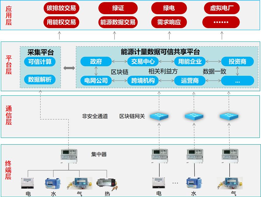 基于区块链的能源计量数据共享平台参考架构示意图。颜拥制图