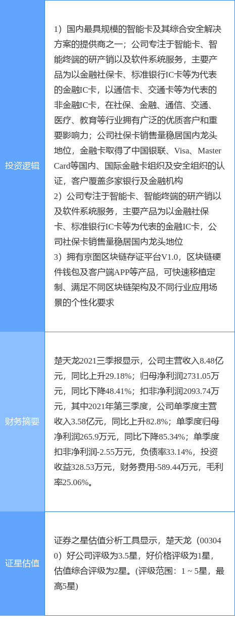 摘要: 楚天龙涨停收盘,收盘价28.71元。该股于13点13分涨停,2次打开涨停,截止收盘封单资金为2803.65万元,占其流通市值1.25%。资金流向数据方面,当日主力资金净流入1.53亿元,游资资金净流入1.63亿元,散户资金净流出8949.83万元。近5日资金流向一览见下表:该股为数字货币,智慧政务,区块链概念热股,当日数字货币概念上涨1