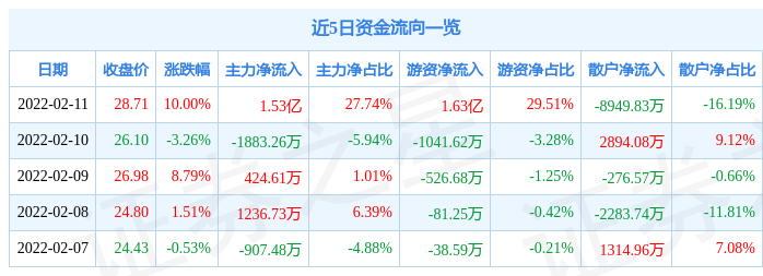 资金流向数据方面,当日主力资金净流入1.53亿元,游资资金净流入1.63亿元,散户资金净流出8949.83万元。近5日资金流向一览见下表: