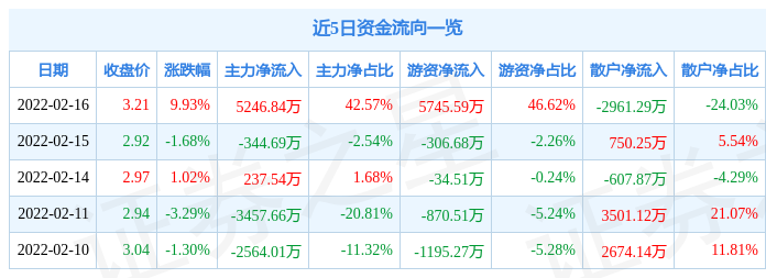 资金流向数据方面,当日主力资金净流入5246.84万元,游资资金净流入5745.59万元,散户资金净流出2961.29万元。近5日资金流向一览见下表: