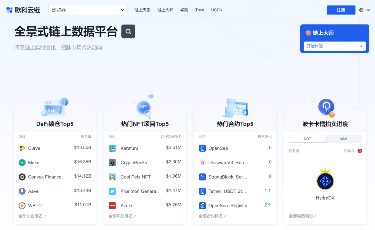 伴随着政策对区块链的支持,区块链将迎来全新的时代,链上数据的应用将占据区块链行业的半壁江山,欧科云链率先推出链上大师,将打造一个更安全、稳定和健康的区块链应用工具,助力区块链大数据与安全领域,依托强大的数据处理能力,让区块链在数字经济中贡献价值。