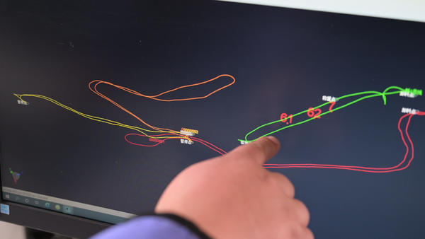 这种职业从传统幻化为新奇,有了科技魔力后,新一代的年轻人也愿意加入到采矿之中。你能想象吗,90后小伙董亚东,一个人要管15辆电动矿用无人卡车。在他维护的操作系统前,这些车辆其实就是一个个圆点,在不同颜色的“轨道”上按指令运行。