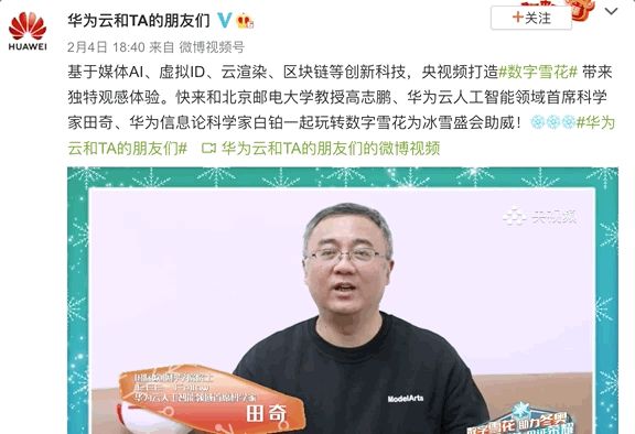 其中就点名了华为云联合央视频推出的“数字雪花”。