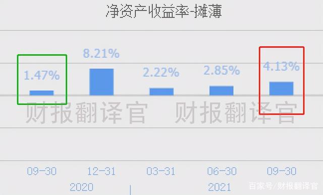 而到了2021年第三季度,公司的净资产收益率达到了4.13%,同比增长了181%。