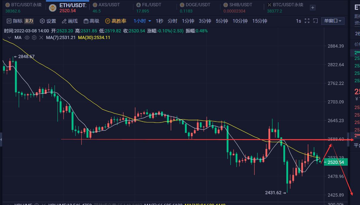 昨日尾盘晚间最终行情还是走出来大幅下挫的行情,晚间盘中大饼跌破日内低点37500一线,往下测试了一遍37000的整数关口,再次刷新了新低,以太坊则不负众望的再次领跌,盘中不单下破2500关口,更是大幅下挫最低跌至了2430一线,日线再次收阴。目前整体来看趋势弱势行情还是没有改变,下方的低点位置还是在不断下移,今日早间虽然行情往上面快速反弹了部分,不过不管是大饼还是以太都没有升破高点,反弹不破压力位那么继续转头向下的可能依然存在,结合大趋势日线的弱势表现,今日还得顺势而为去布局空单方向。