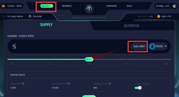 抵押,“已存入的”资产,借入所需资产代币,然后是质押FTP,获得利息,最后在Oasis网络上最大的DEX YuzuSwap上为FTP-ROSE交易对提供流动性来获得收益。