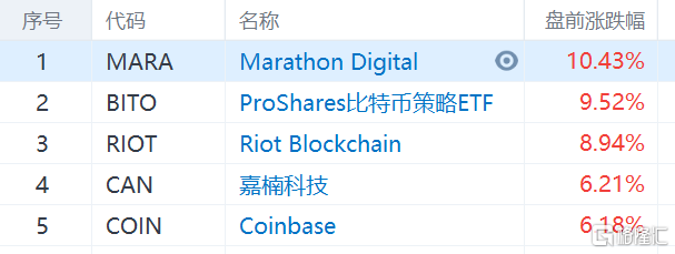 美股异动丨区块链概念股盘前走强比特币站上42000美元/枚