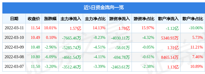 资金流向数据方面,当日主力资金净流入1.57亿元,游资资金净流入1.78亿元,散户资金净流出1.12亿元。近5日资金流向一览见下表: