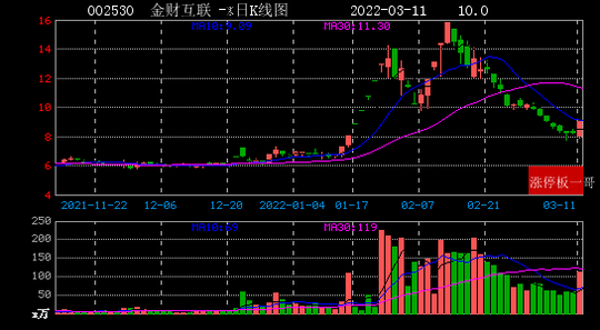 2022年03月11日,区块链受到利好消息的刺激下,整个板块掀起了涨停潮。共8家涨停。