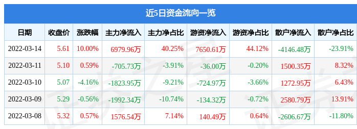 资金流向数据方面,当日主力资金净流入6979.96万元,游资资金净流入7650.61万元,散户资金净流出4146.48万元。近5日资金流向一览见下表: