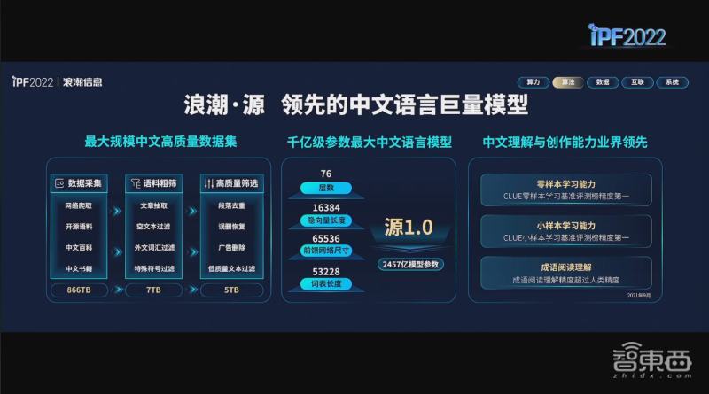 去年,浪潮发布面向自然语言理解的中文语言巨量模型“源1.0”,该模型拥有2457亿个参数,可容纳超5万词表。彭震说,“源1.0”在零样本学习、小样本学习以及成员阅读理解等方面已成为中国第一。