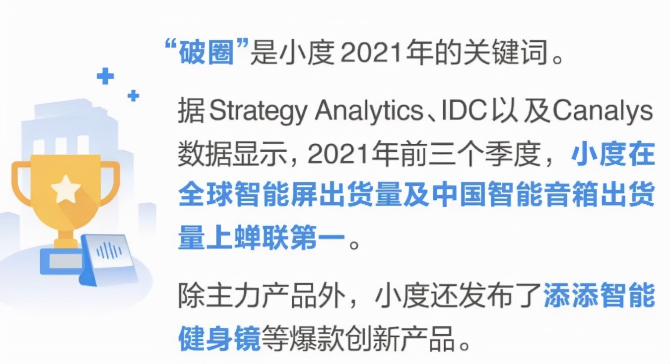 从市场数据看来,小度科技的业务发展规模还算不错,但想要在智能音箱甚至全屋智能方面达到新的高度,“破圈”是小度关键。这也是小度欲撕掉“硬件”标签,打造自身的小度生态圈的关键。